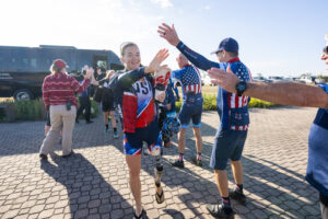 Melissa Stockwell made history as the first Iraq War U.S. Army veteran to qualify for the Paralympic Games after losing her leg in active combat in 2004. Stockwell is now a four-time Paralympian, having competed in the 2008 Beijing, 2016 Rio de Janeiro (where she won a bronze medal in paratriathlon), 2020 Tokyo, and 2024 Paris Games. One of the prosthetic legs she used in competition is displayed as a powerful symbol of resilience, the strength of female athletes, and the continued progress of adaptive sports.