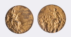 On display in Game Changer are two of Jesse Owens’ four gold medals from the 1936 Olympics, along with his participation medal. Despite immense pressure, Owens broke world records in all four events he competed in, becoming the first athlete to win four gold medals in a single Olympic Games.