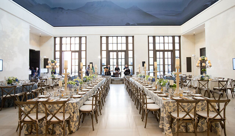 As few as 10 or as many as 400 guests may gather for breakfast meetings and luncheons, stately receptions, or elegant dinner affairs.
